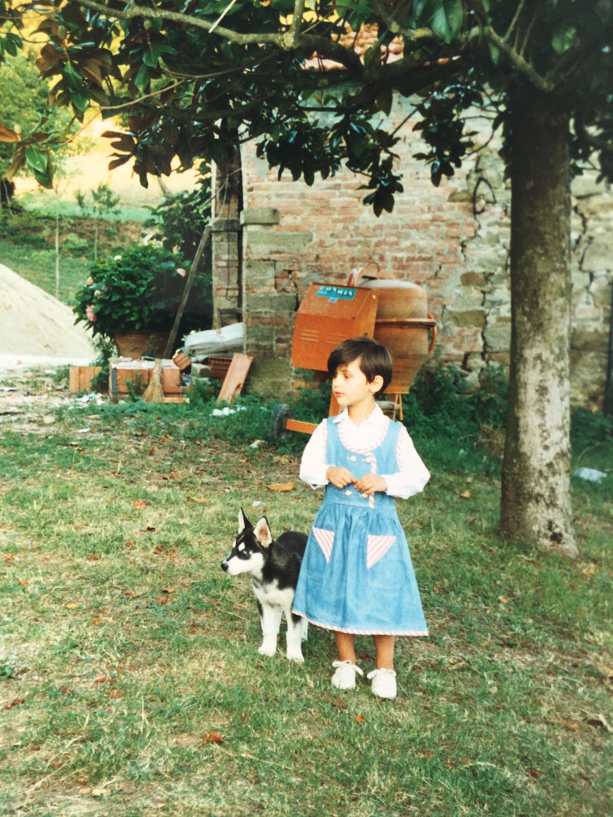 Il primo amore è stato Chicco – incrocio husky/pastore tedesco- cane dei vicini Toscani. Avevo 3 anni.